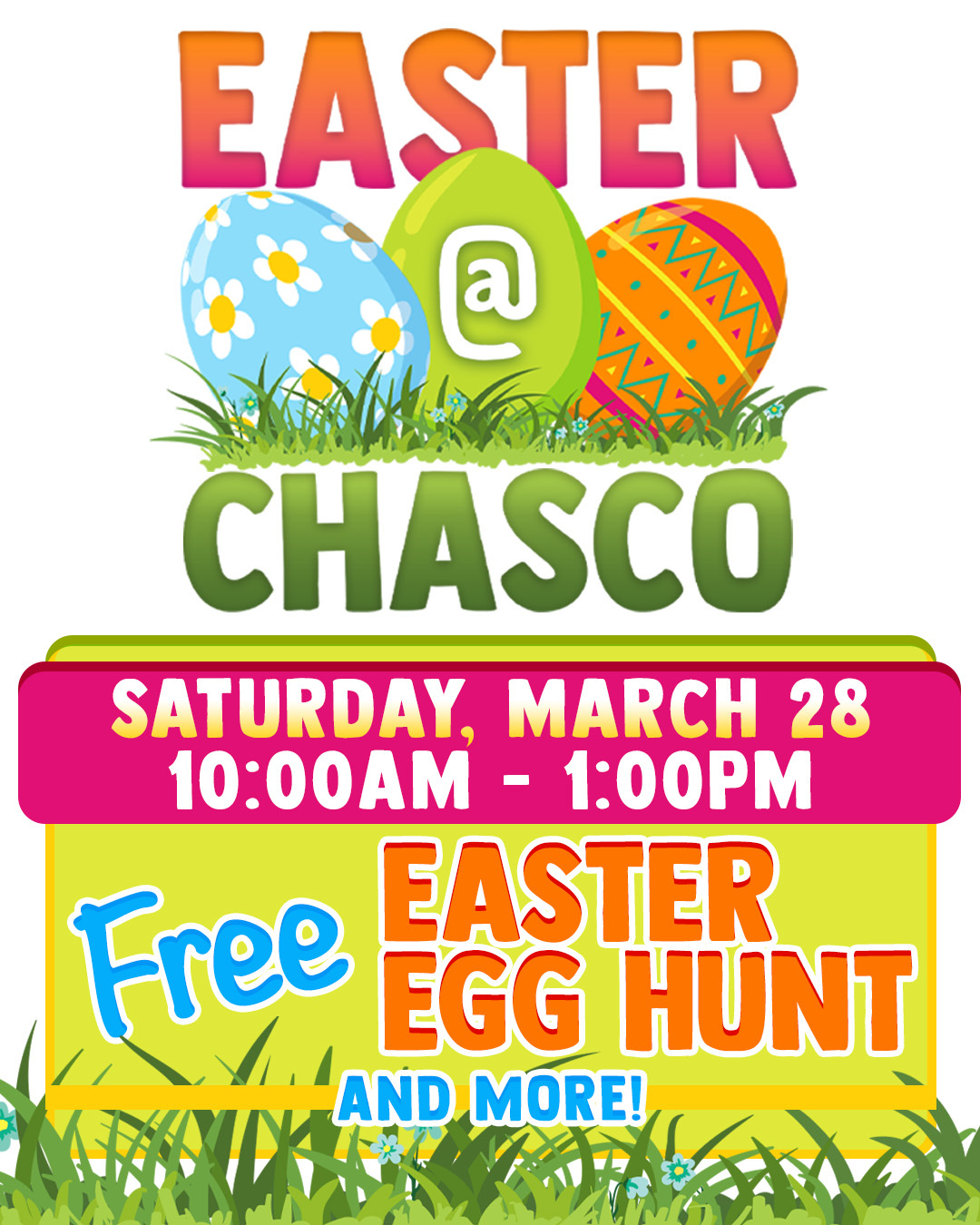 Don't forget to add the link to the Easter @ Chasco webpage: www.fbcbelong.com/easteratchasco